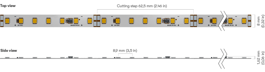 | D112/19-930 | 112 | 19.2 W/m | 24 VDC | CRI90 | 3000K | 62.5mm | 2632 lm | 137 | 4.5m |
