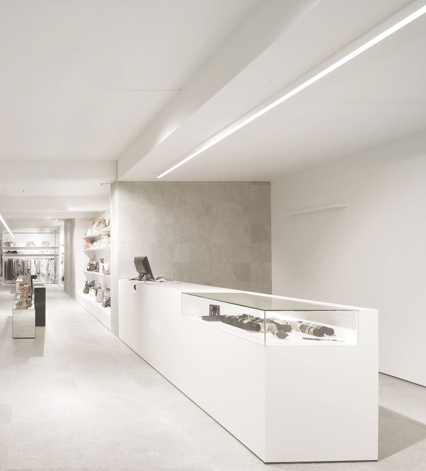 Modular system for single luminaire or continuous files, made of aluminum in minimal version with wire diffuser, low contrast for general light with opal screen, high contrast with prismized diffuser with controlled luminance.