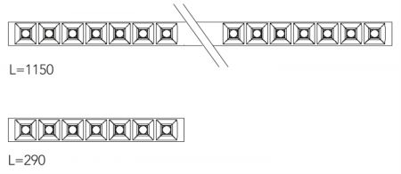 Luminaire made of aluminum for completely concealed mounting in the false ceiling. Black control optic.