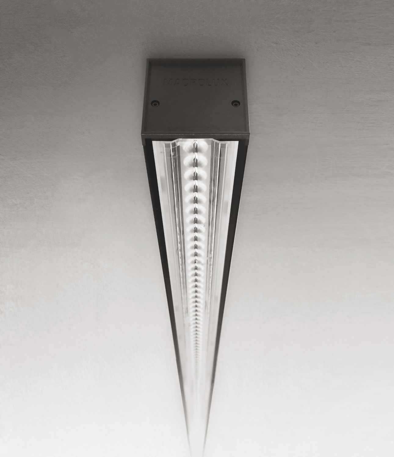 Suspended luminaire with different optics to adapt to any environment and guarantee excellent visual comfort. High efficiency 93%.
