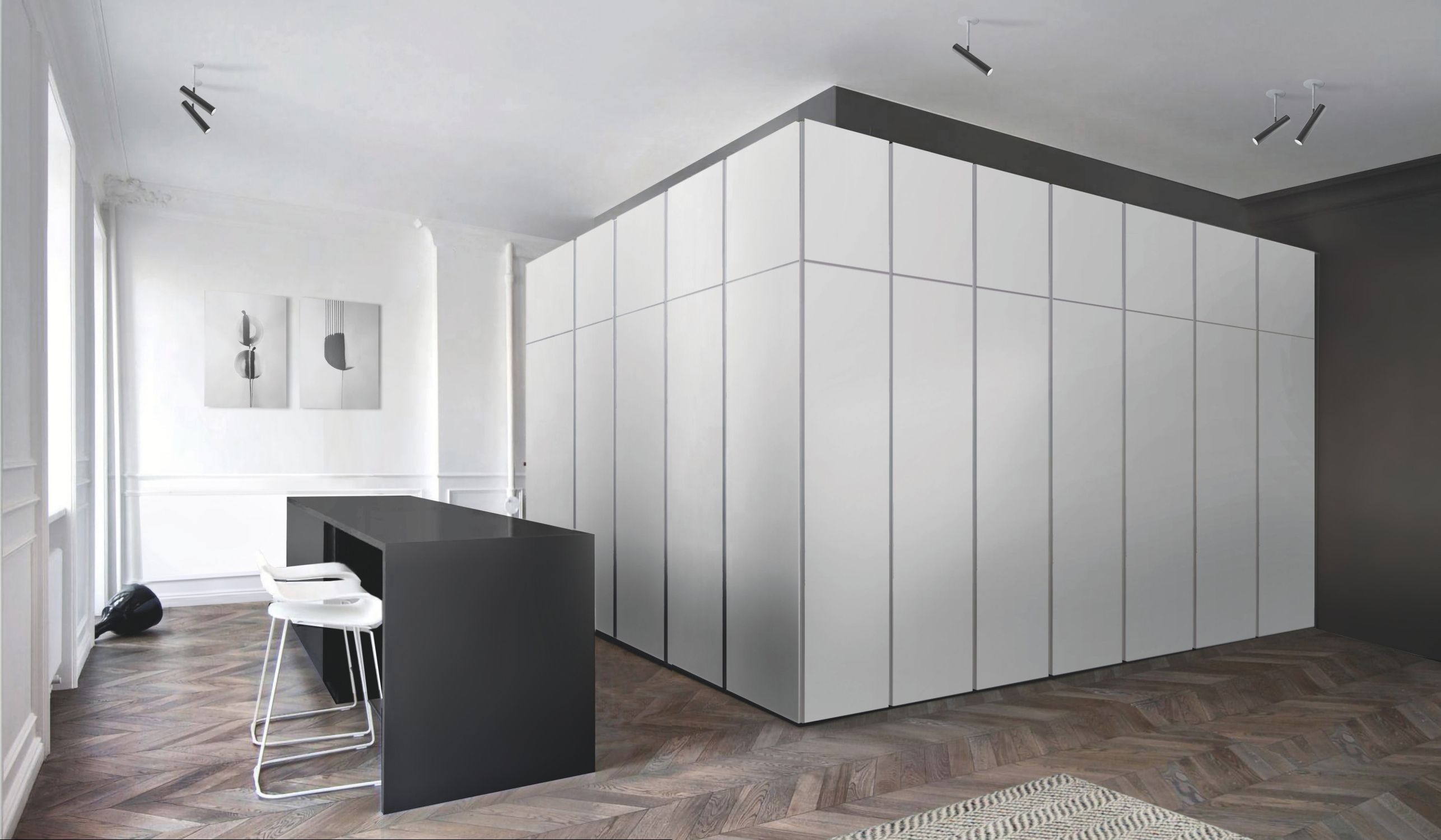 Finishes: Black // White // White-Black // Black-White // Bronze // Bluish grey Ral 7031 // Silk grey Ral 7044 //
