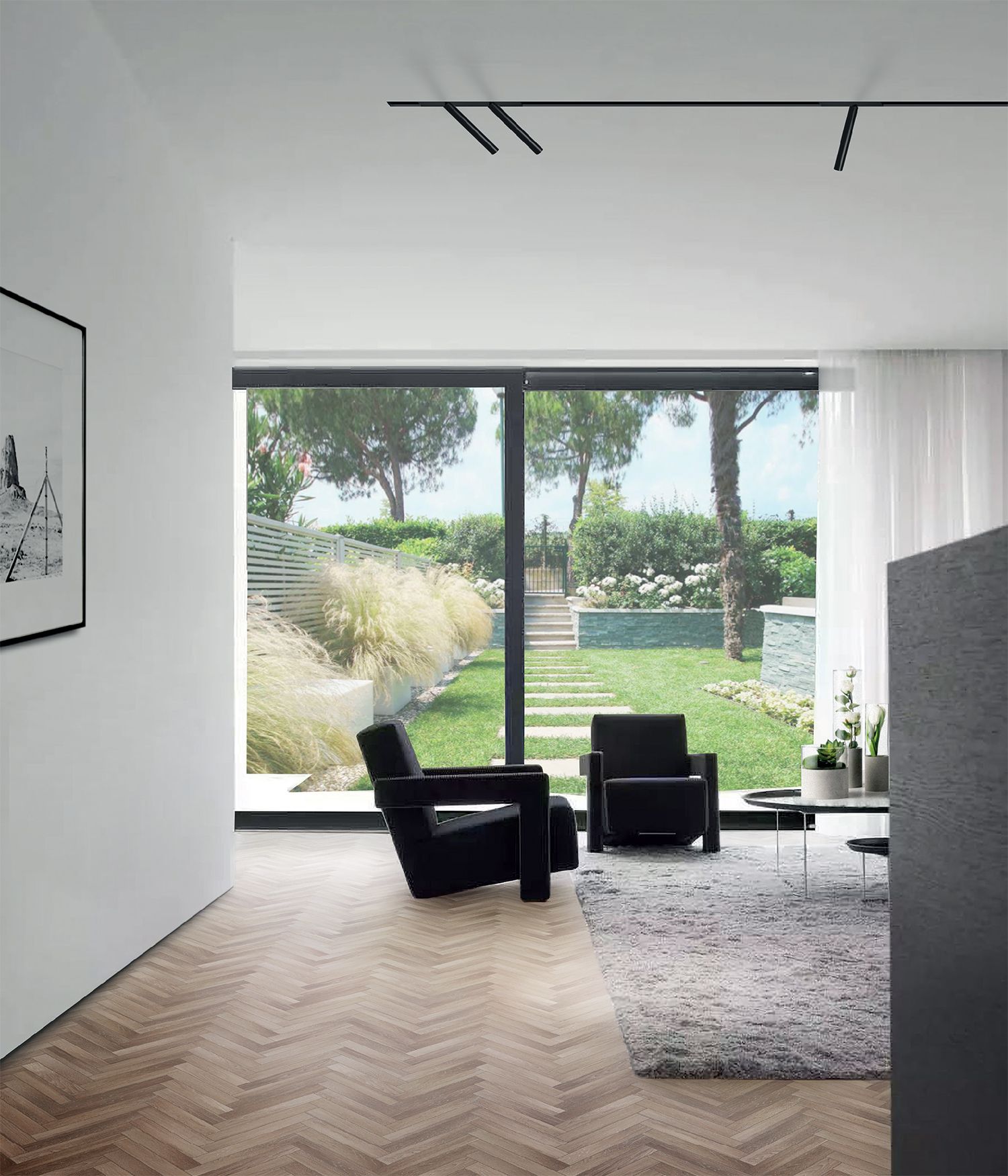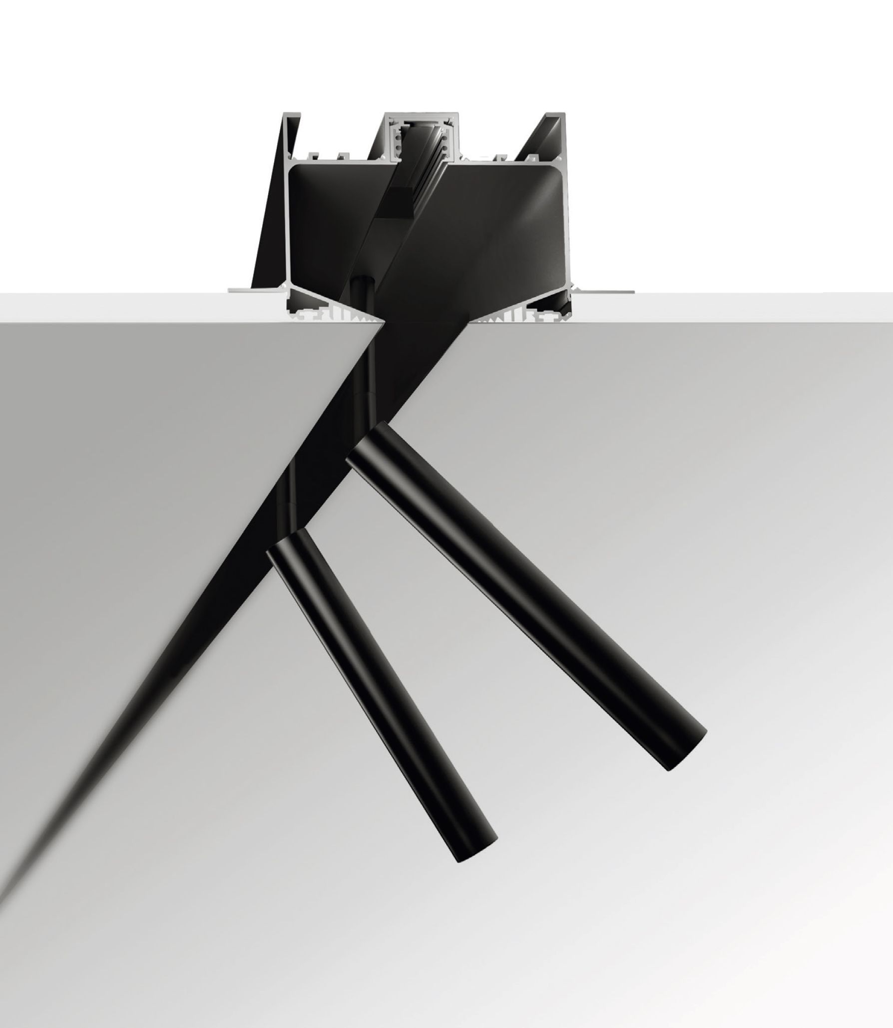 The Slim Dark 48V adjustable downlights are designed for installation on the DARK track design recessed track. Equipped with mechanic coupling, they make it possible to hook and move the projectors inside the track in a simple and safe way without using any tool.