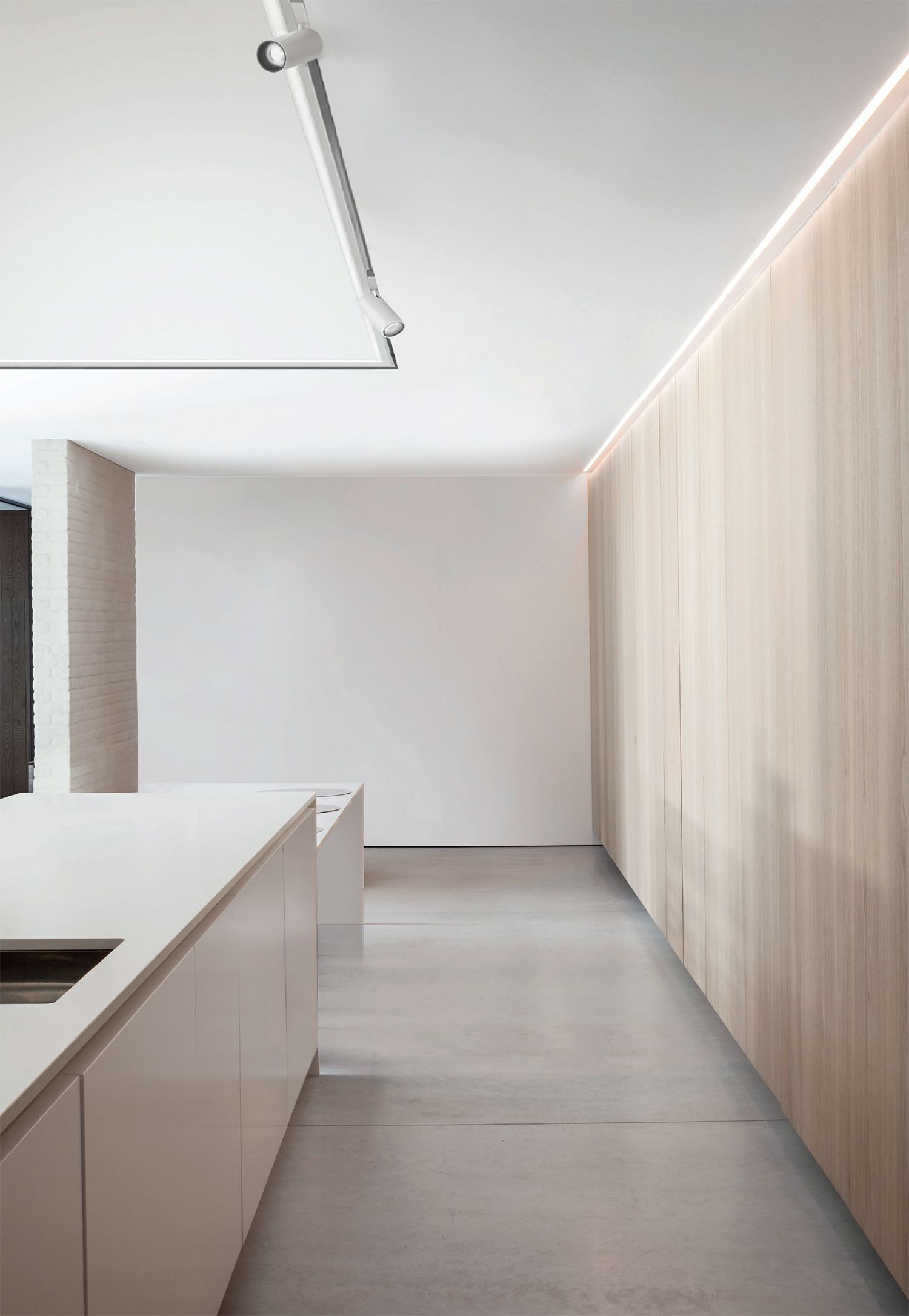 ME_448 trimless, recess mounted track with a single control track circuit (switched or DALI) and separate ambient linear light, designed for various minimal and elegant lighting environments such as art galleries, shops, museums.
