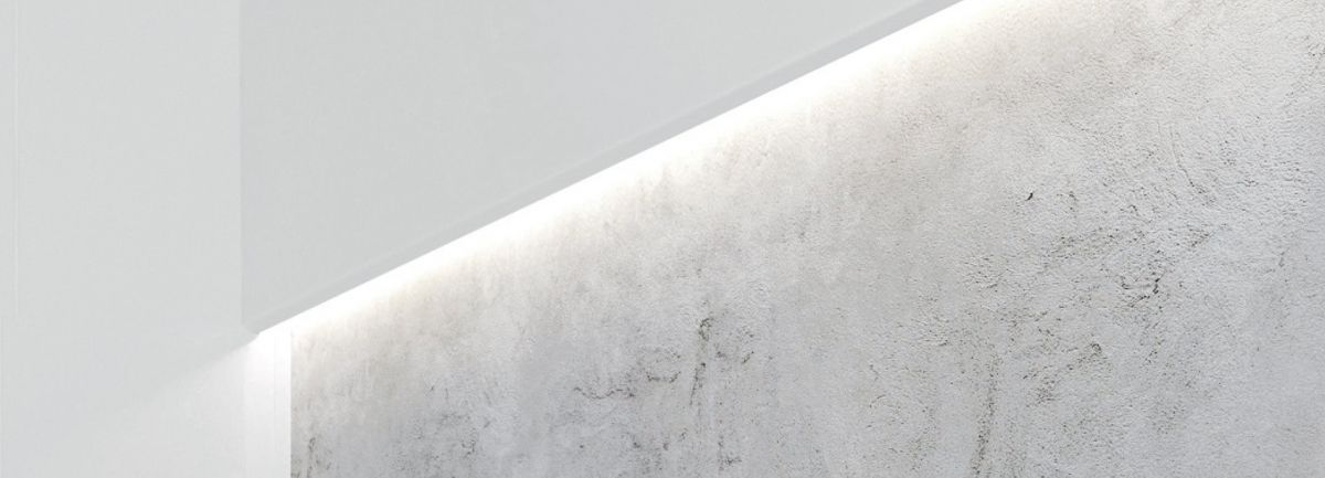 A trimless recess mounted linear LED luminaire manufactured from extruded aluminium and finished in matt white with an opal diffuser. Designed for installation at the ceiling/wall/floor junction, to create a consistent wash of light around the room perimeter.