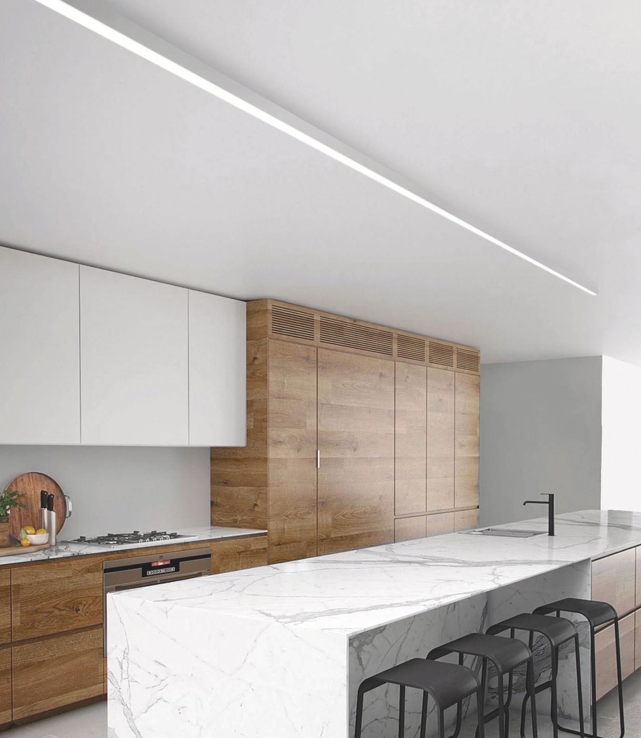 Aluminum profile 65 x 61mm, complete with opal diffuser (efficiency 64%) or transparent prismatic (efficiency 92%), integrated power supply. Ceiling mounting.