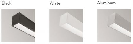 Modular system for single luminaire or continuous files, made of aluminum in minimal version with wire diffuser, low contrast for general light with opal screen, high contrast with prismized diffuser with controlled luminance.