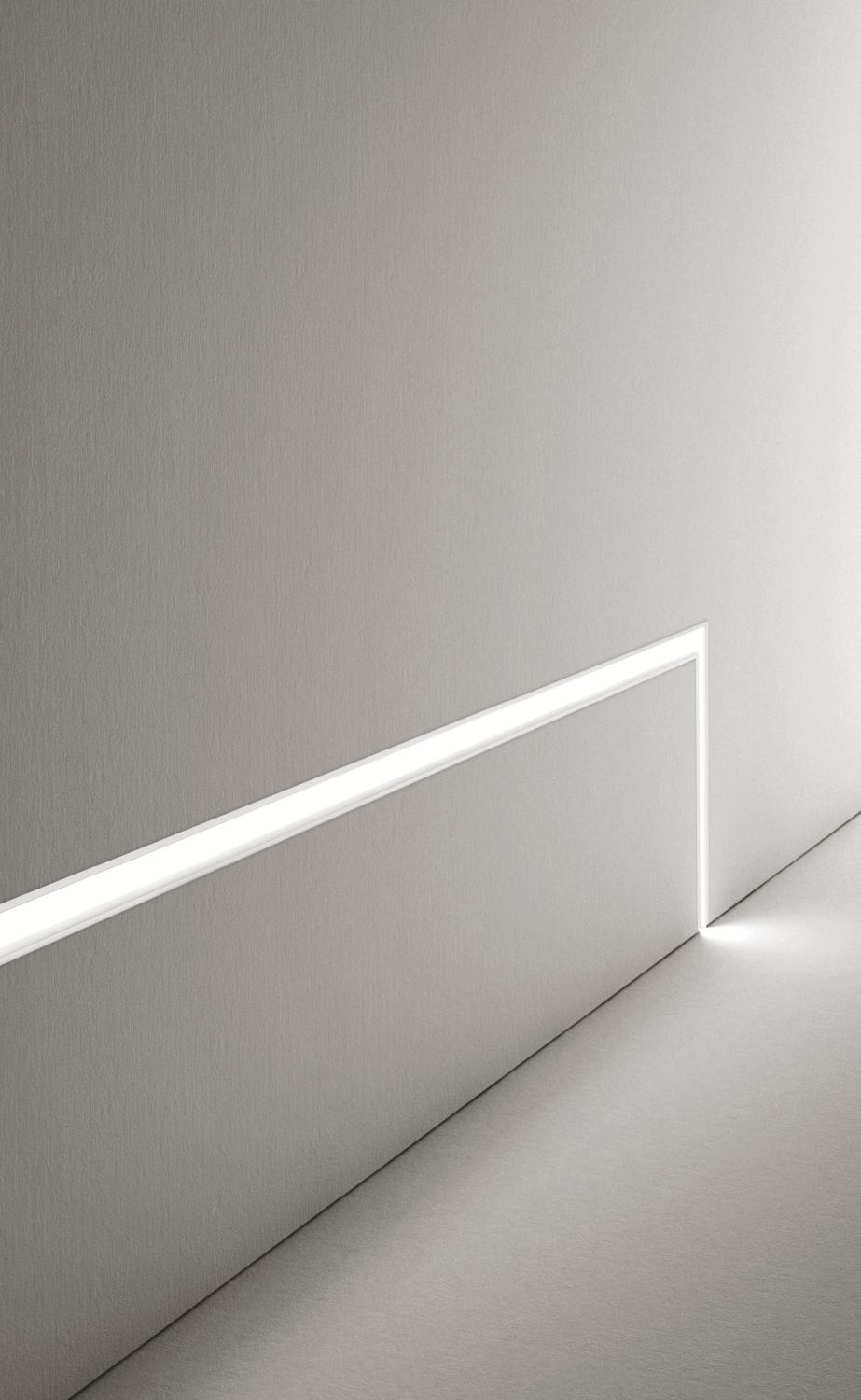 Extruded aluminium profile systems, suitable for recessed installation. To be equipped with LED strips allows a continuous and homogeneous light effect. With the 14mm slightly retracted satin polycarbonate diffuser, it determines a better aesthetic return.