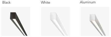 Extruded aluminium profiles 50 x 64.5 of the MX series with a polycarbonate diffuser retracted by about 21mm with respect to the edge of the profile itself to allow a more comfortable emission, lowering the direct luminance. They can be installed on the ceiling or suspended. Equipped with MKC LED module kit. Available in black, white and satin anodised aluminium finishes.