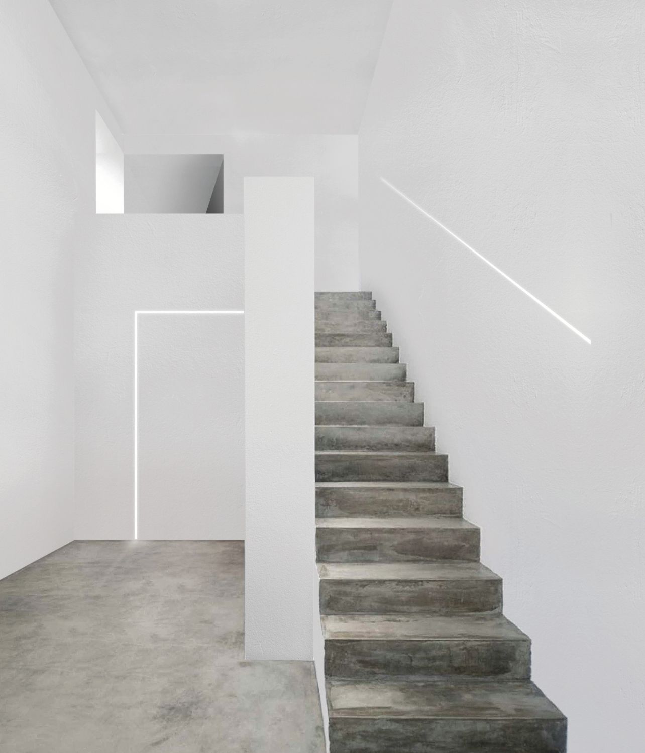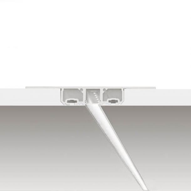 Extruded aluminium profile matt white for total hide recessed installation in the plasterboard.