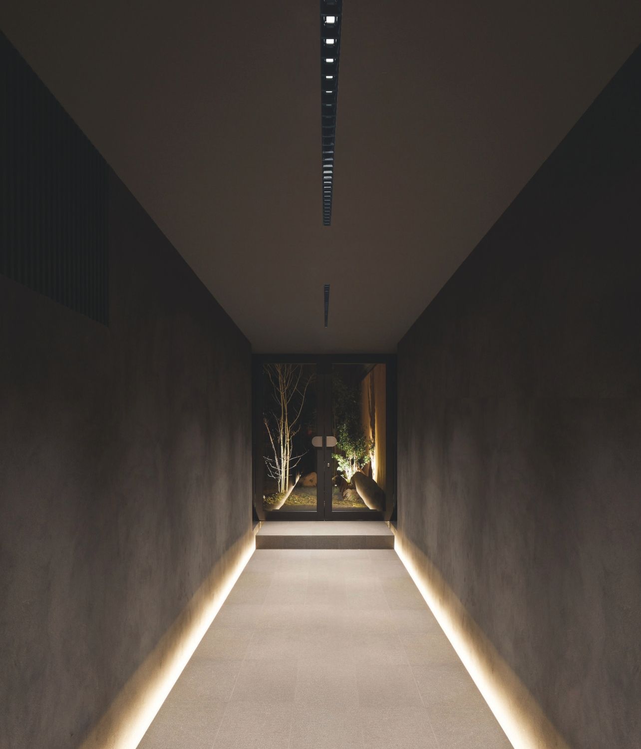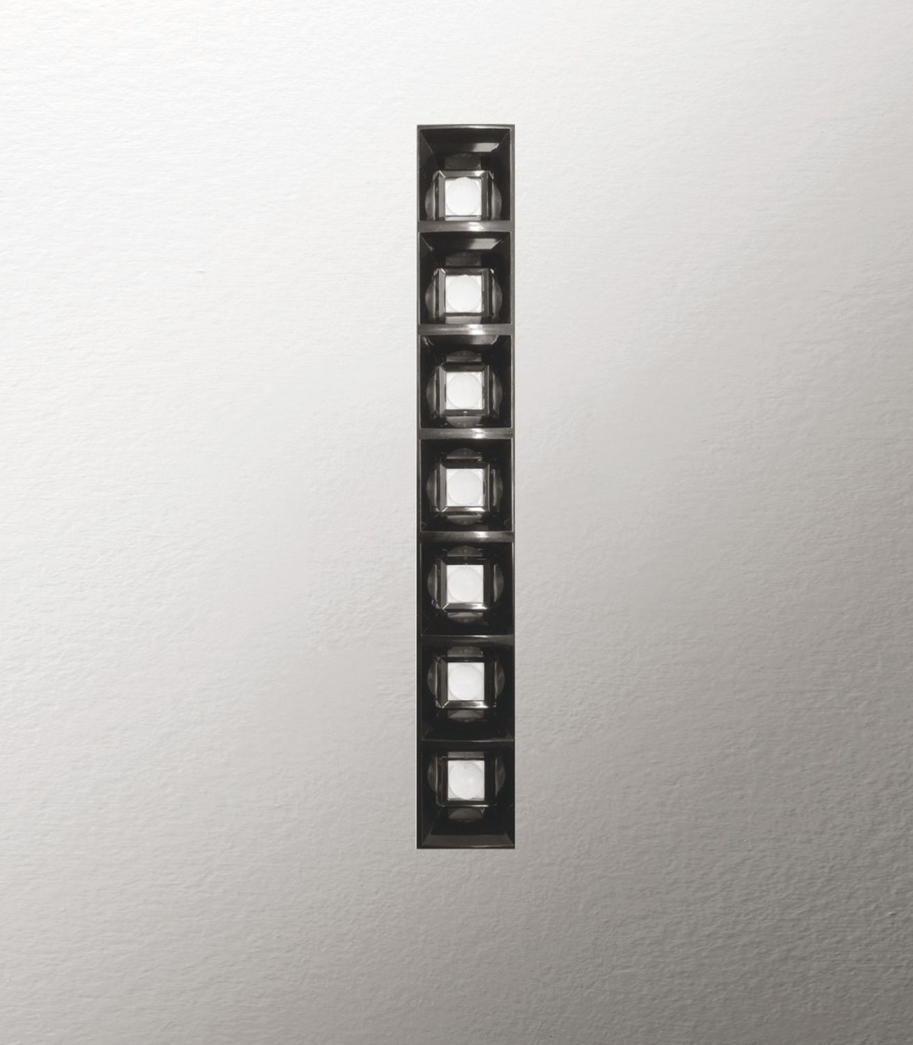 Luminaire made of aluminum for completely concealed mounting in the false ceiling. Black control optic.
