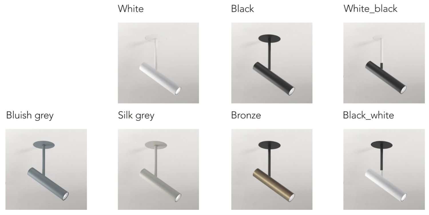 Finishes: Black // White // White-Black // Black-White // Bronze // Bluish grey Ral 7031 // Silk grey Ral 7044 //