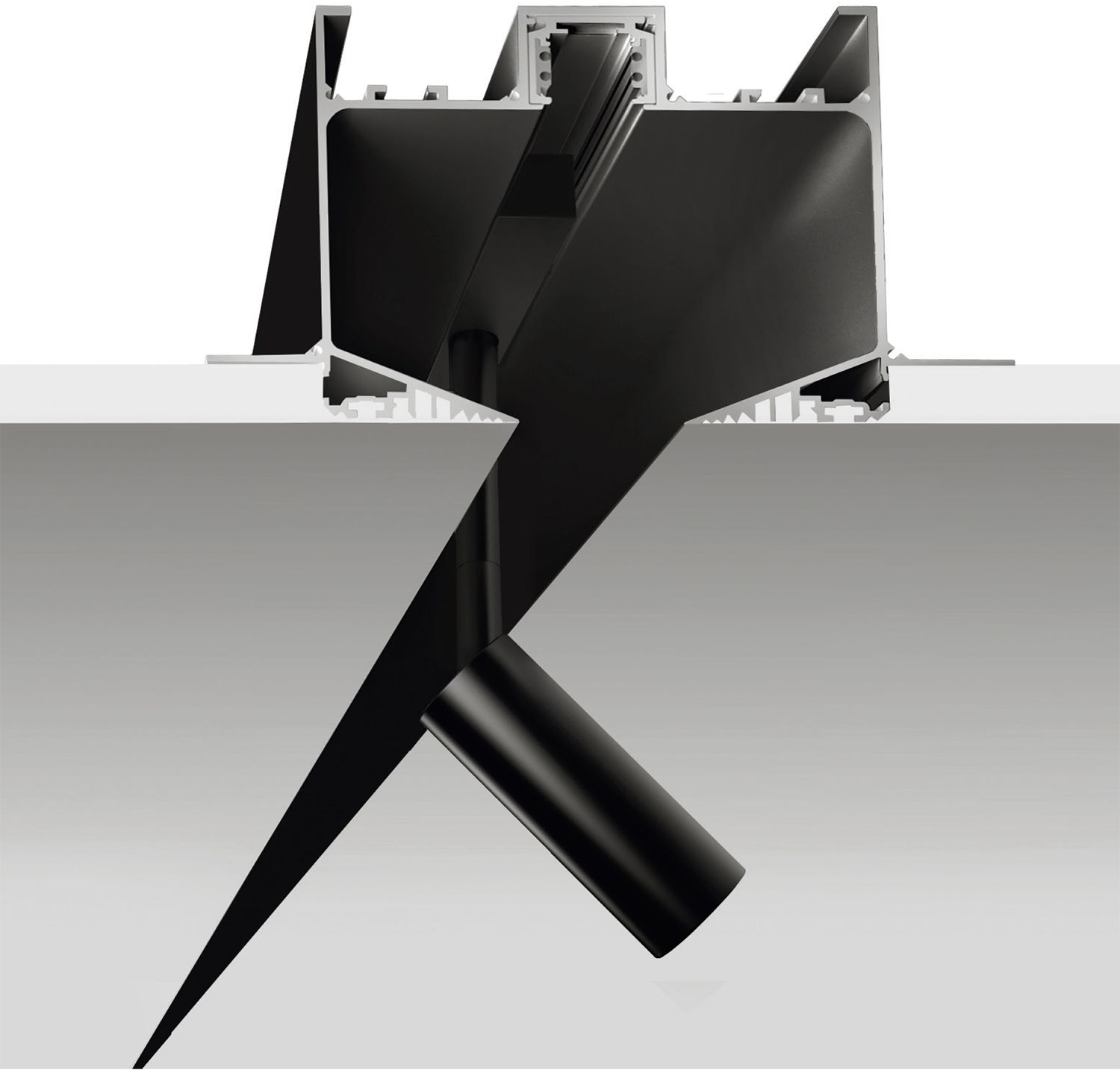 MINI OUT 48V spotlights are designed for recessed mounting within the DARK track. Equipped with mechanic coupling, they make it possible to hook and move the luminaire inside the track, in a simple and safe way without tools.