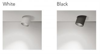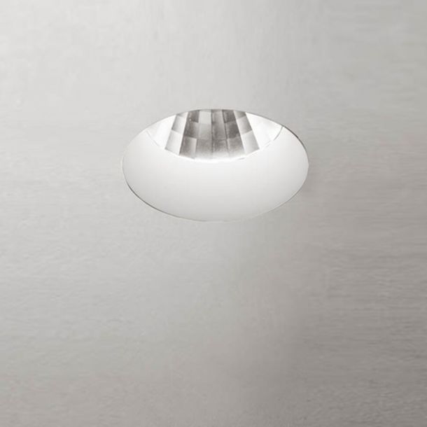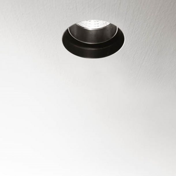 Round trimless recessed fixture for indoor lighting, made of aluminium in the finishing white or black, with a telescopic cylinder projector inside that comes white or black. The spotlight is equipped with an anodized ring in the finishing black to reduce the luminance.