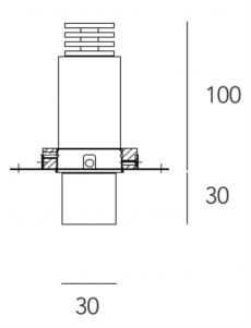 Semi-recessed with trimless base for applications in plasterboard false ceilings. 30mm extract. Spot emission 26 ° with aspherical glass lens.