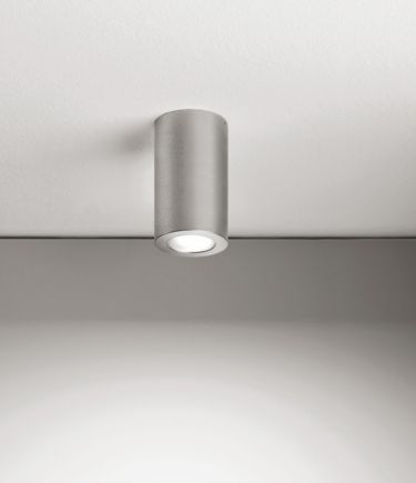 Outdoor fixture IP54 made of turned aluminum with epoxy powder coating in white or grey color, surface mounting.