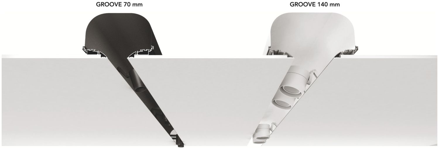 The system GROOVE consists of a pair of ML_30 profiles installed opposite each other, bounding the aperture in the plasterboard, and covered with sheet steel painted in standard matt black or white.