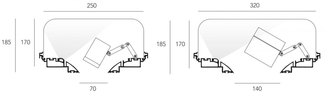 The system can be realizable without the sheet steel cover, by building the enclosure using plasterboard, as shown below. This type of application can be useful in cases where you want to obtain a specific aperture size, different to the standard 70mm and 140mm imposed by using the covers.