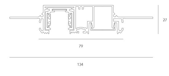 ME_448 trimless, recess mounted track with a single control track circuit (switched or DALI) and separate ambient linear light, designed for various minimal and elegant lighting environments such as art galleries, shops, museums.